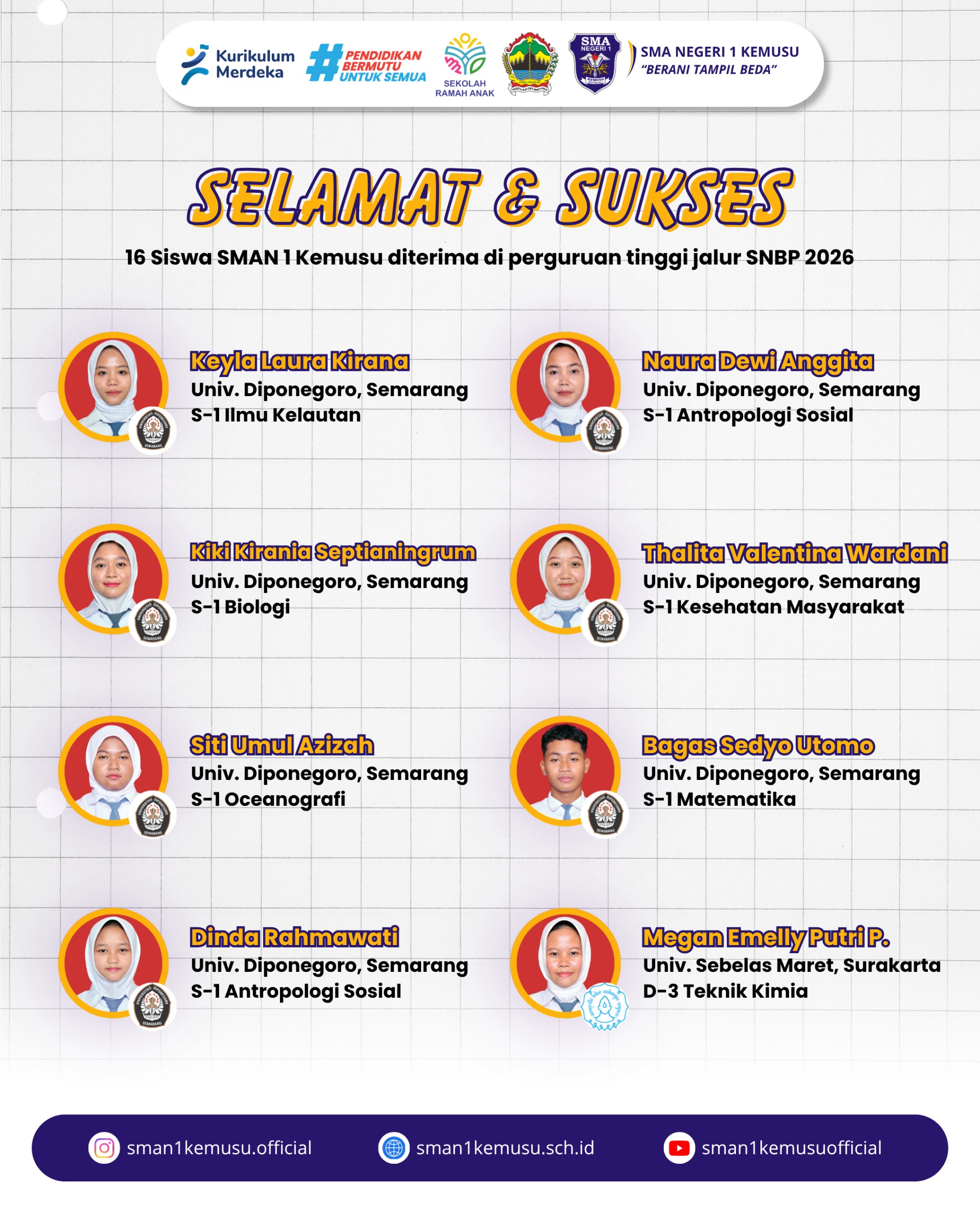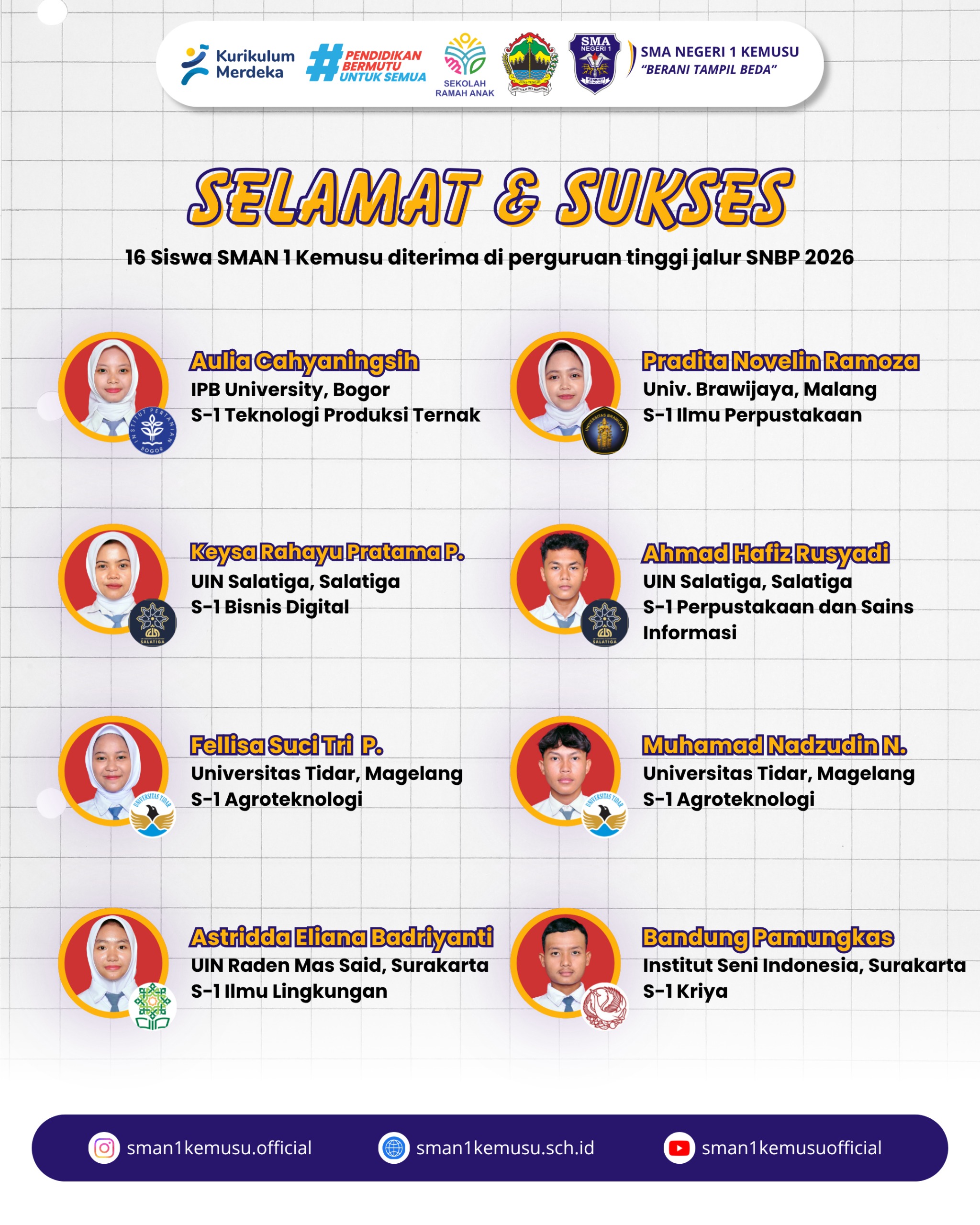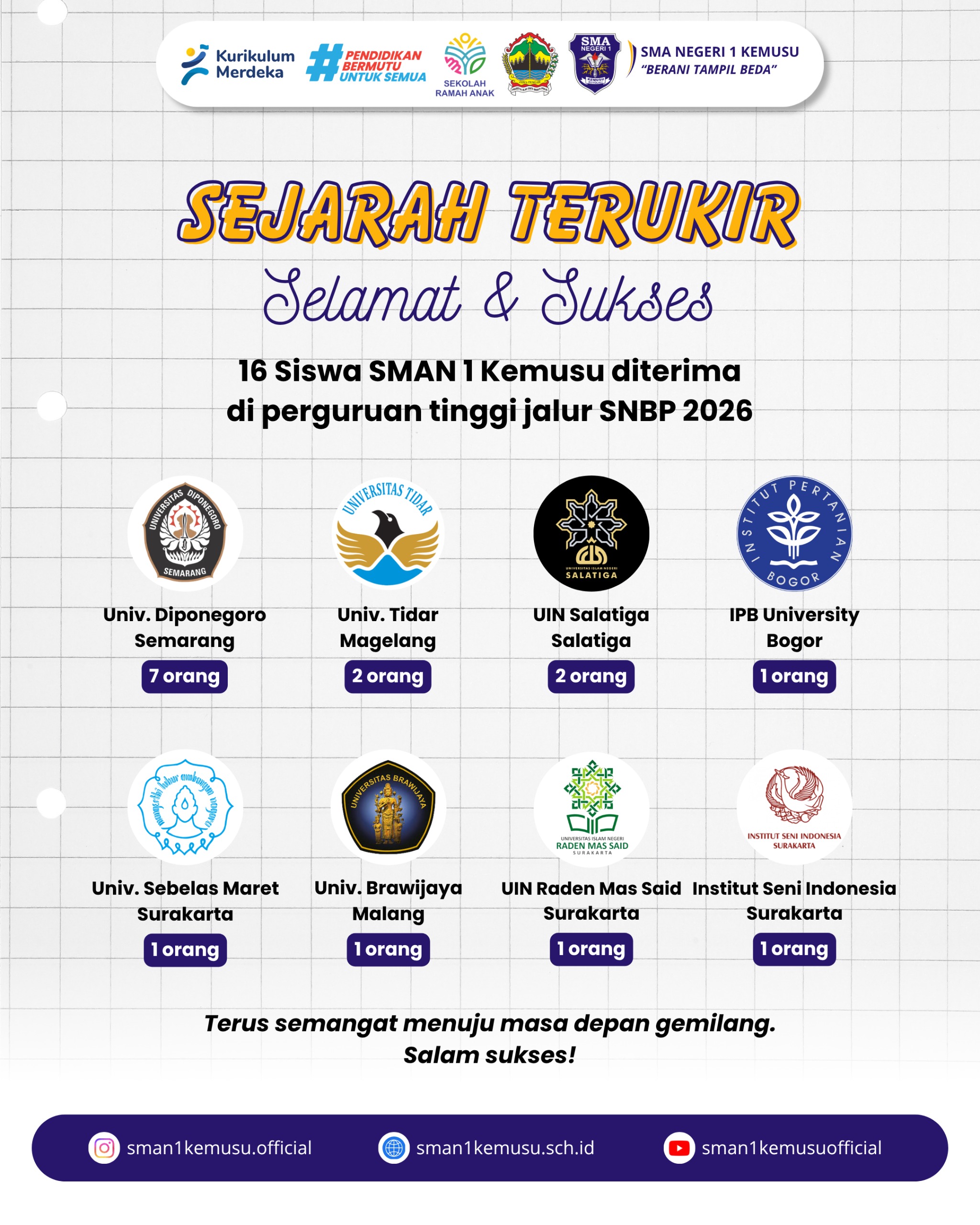 Sejarah Terukir, 16 Siswa SMA Negeri 1 Kemusu diterima di Perguruan Tinggi jalur SNBP 2026 31 Maret 20261 April 2026 admin