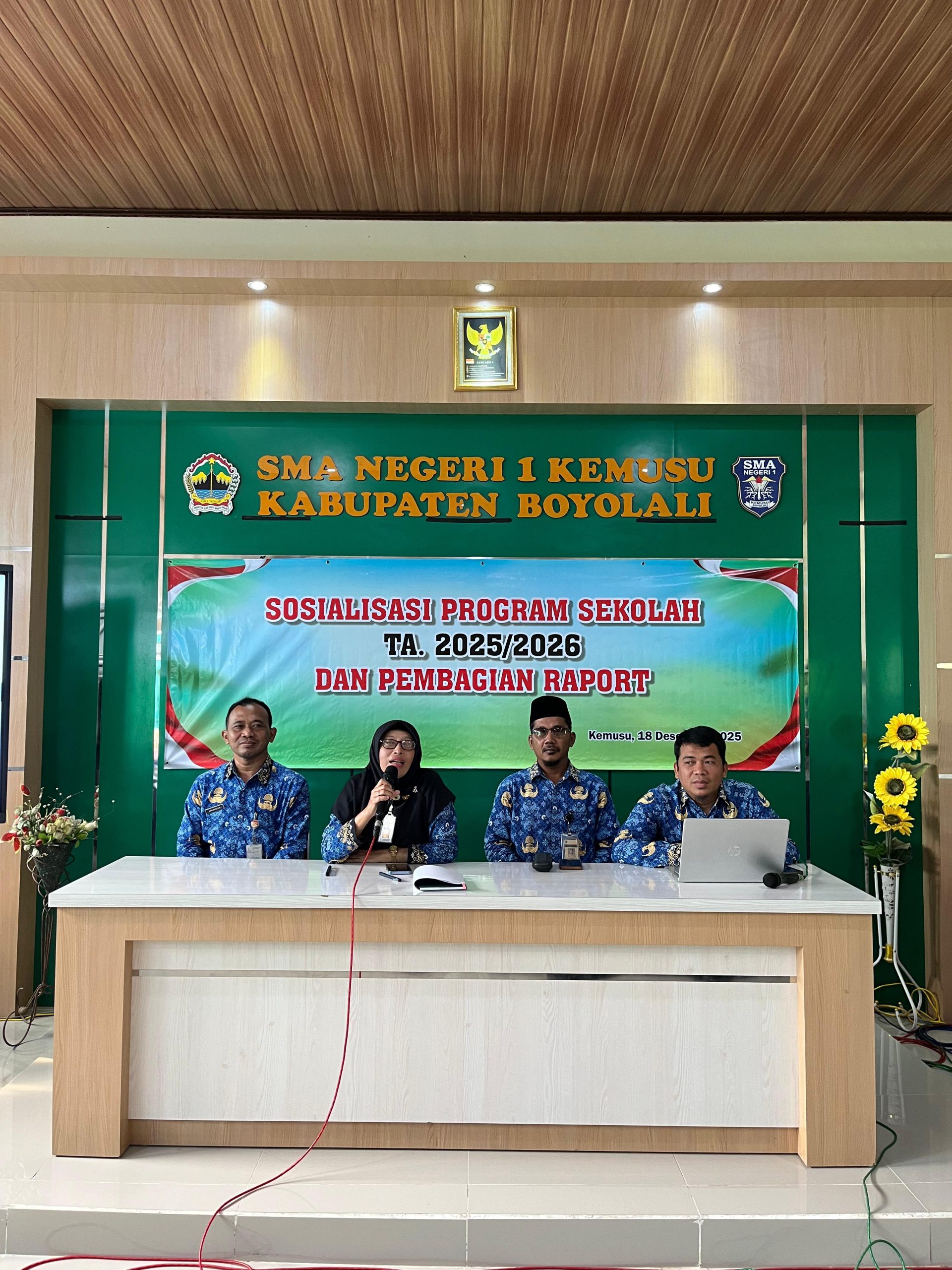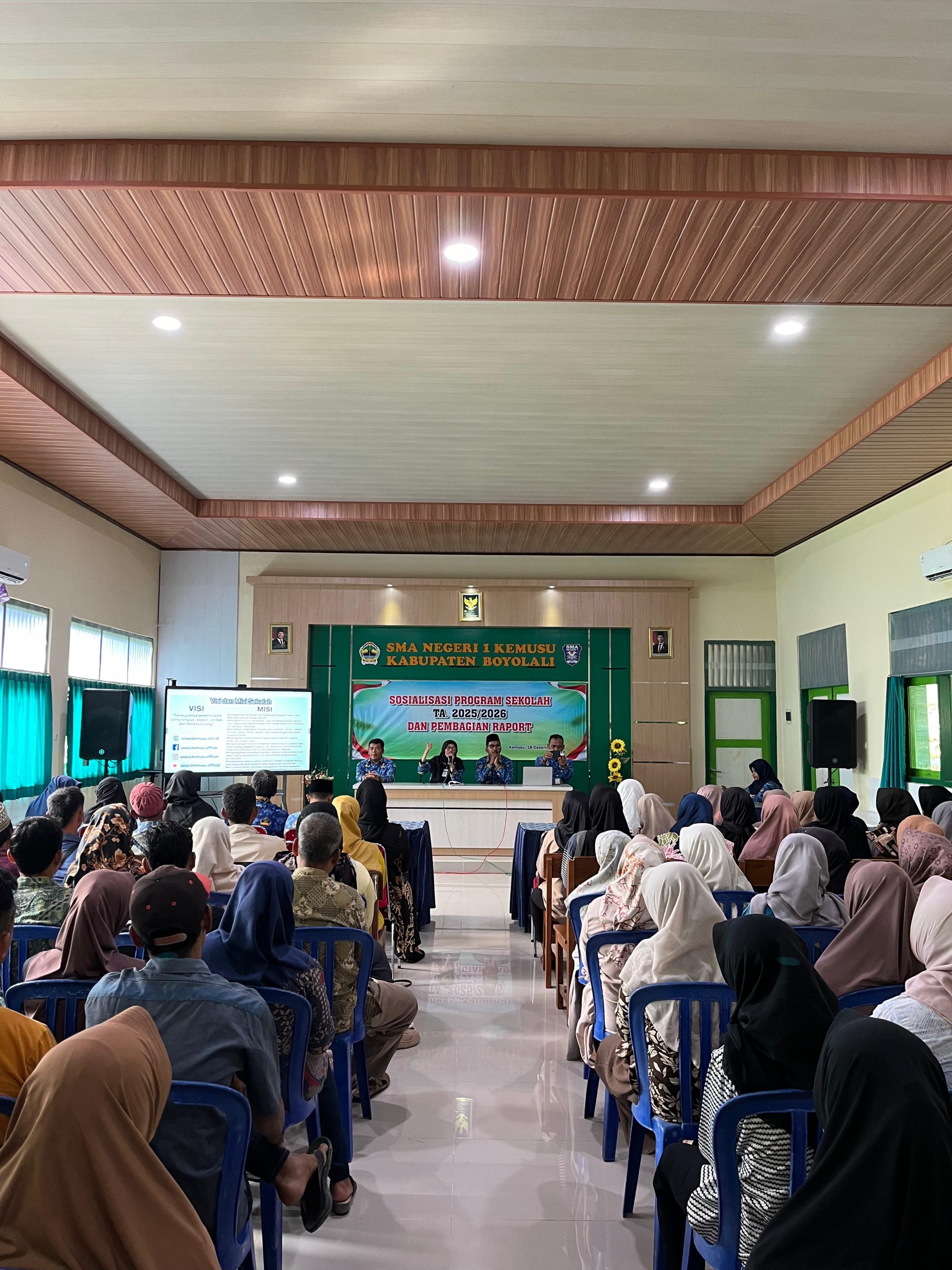 BOYOLALI – Usai melaksanakan Upacara Peringatan Hari Bela Negara yang khidmat, SMA Negeri 1 Kemusu melanjutkan agenda penting sekolah pada Jumat (19/12/2025). Bertempat di Aula Sekolah, pihak manajemen sekolah menggelar Sosialisasi Program Sekolah Semester 2 Tahun Ajaran 2025/2026 yang dirangkaikan dengan pembagian rapor semester gasal.